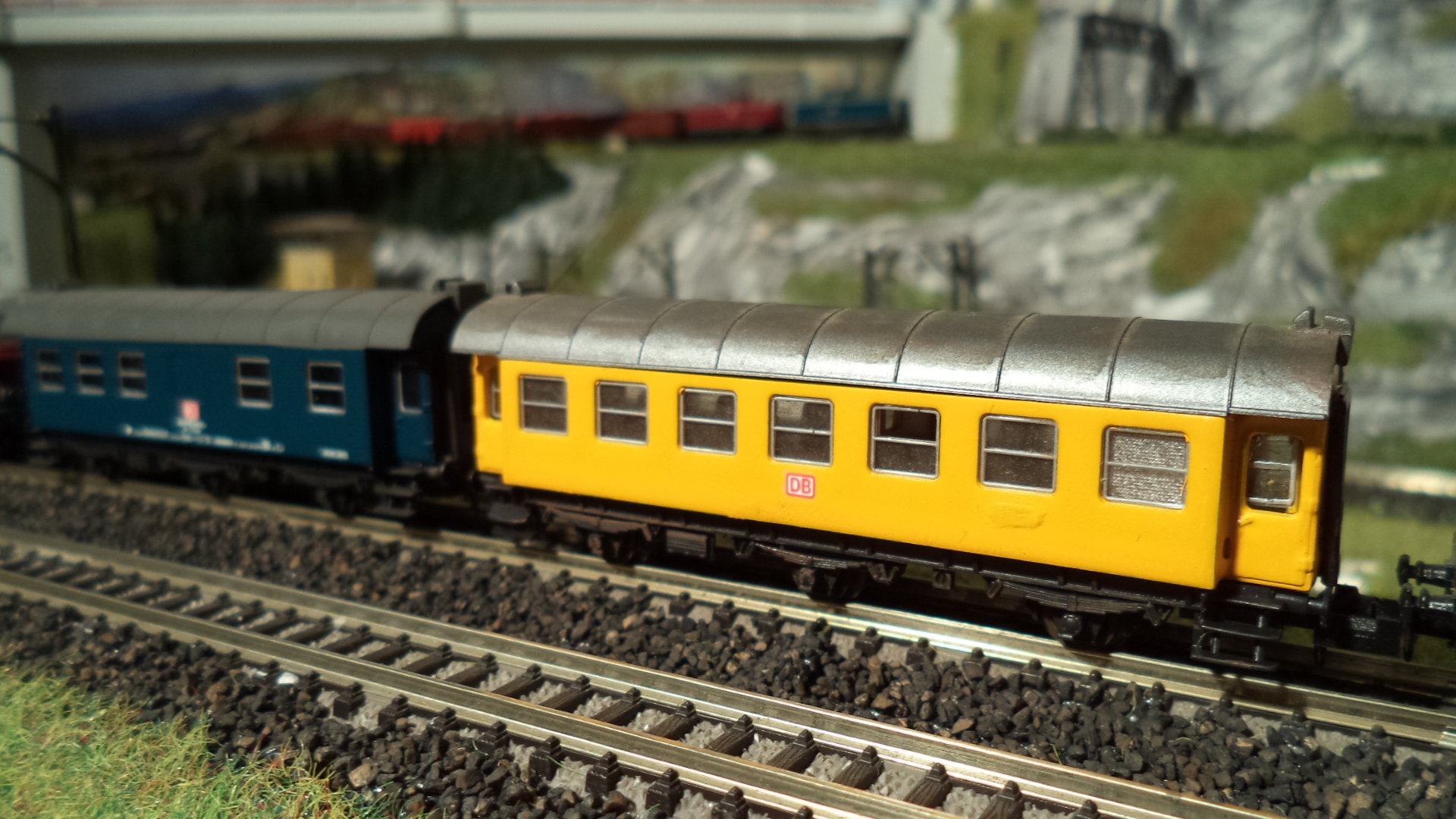 Das fertige Model, wieder zusammengesetzt und mit einem DB Emblem auf der Seite versehen. Der Wagen ergänzt einen Bauzug und passt farblich gut zu den vorhandenen Wagen. |