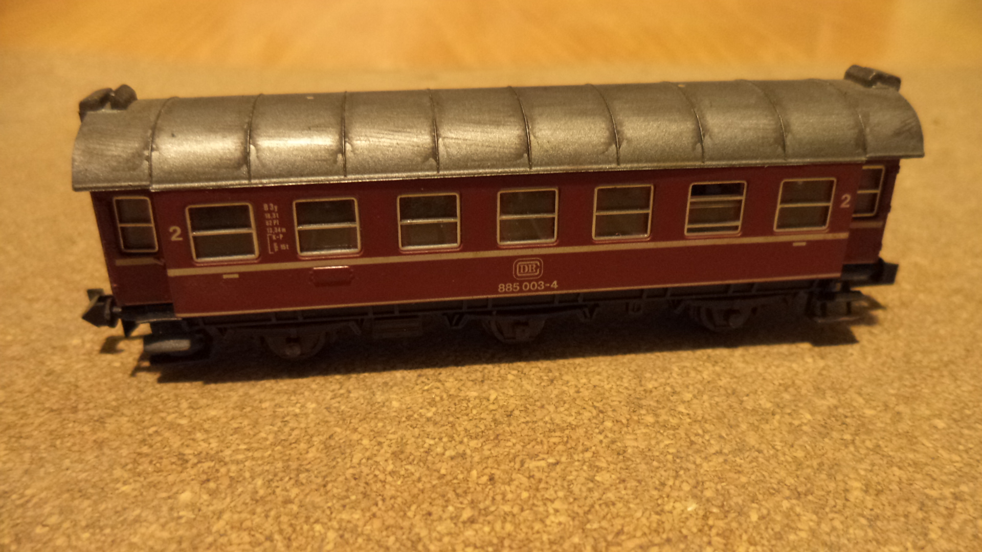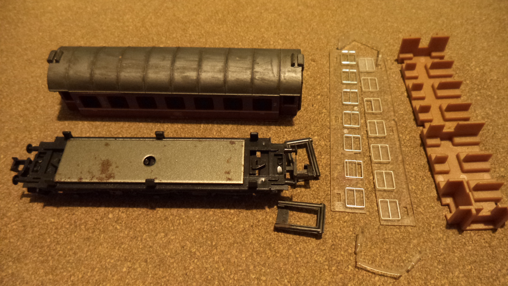 Ausgangsmodell war ein alter Roco Umbauwagen mit drei Achsen welcher schon seit Jahren in einer Kiste lag. |