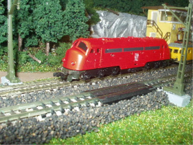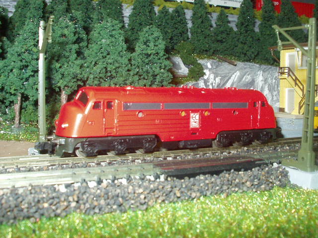 Der erste Schritt war die komplette Zerlegung der Lok, Fenster und Lichtleiter wurden entfernt. Vor der Lackierung wurde die Lok abgeschliffen mit feinem Sandpapier (1000er Körnung) und mit der Airbrushpistole (ISB 500 von Revell) sauber lackiert, erst grundiert und dann in rot seidenmatt 31330 von Revell lackiert. Die seitlichen Lüftergitter wurden in anthrazit matt 31109 von Revell lackiert. Anschließend wurde die Lok wieder zusammengesetzt wobei auch die Mechanik gründlich gesäubert wurde. Etwas schwieriger gestaltete sich das Anbringen eines individuellen Aufklebers. Nachdem ich verschiedene Möglichkeiten ausprobiert hatte, habe ich mich letztendlich für bedruckbare Naßschiebebilder entschieden. Die Naßschiebebilder habe ich im übrigen beim Drucker-Onkel bezogen (www.drucker-onkel.de) |